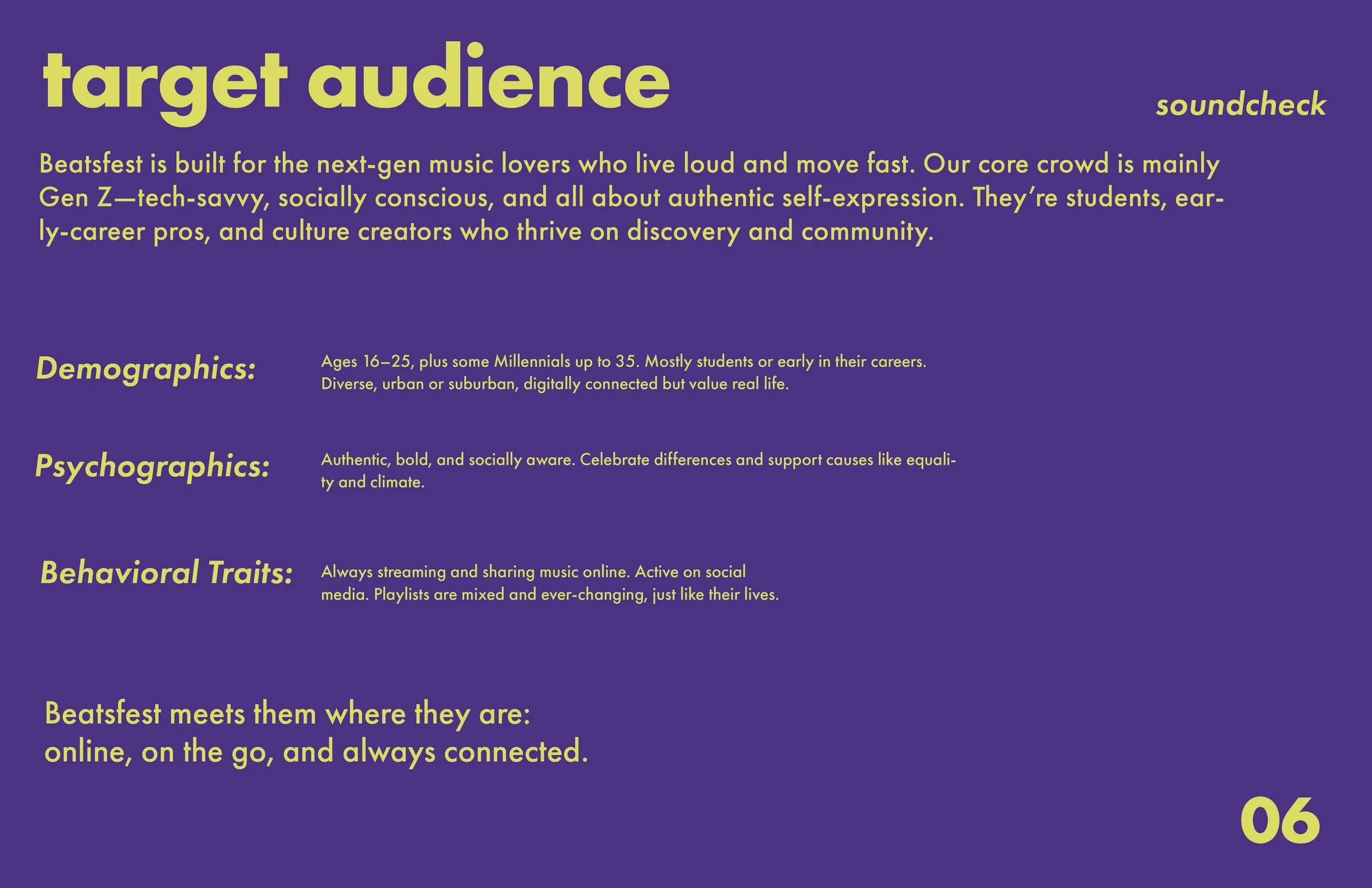 Beatsfest is a vibrant music streaming brand designed to connect with young, creative audiences who value self-expression and individuality. The project involved developing a modern logo and visual identity that captures the energy and rhythm of youth culture. Bold typography, dynamic shapes, and electric color gradients were used to reflect the brand’s lively, digital-first personality.